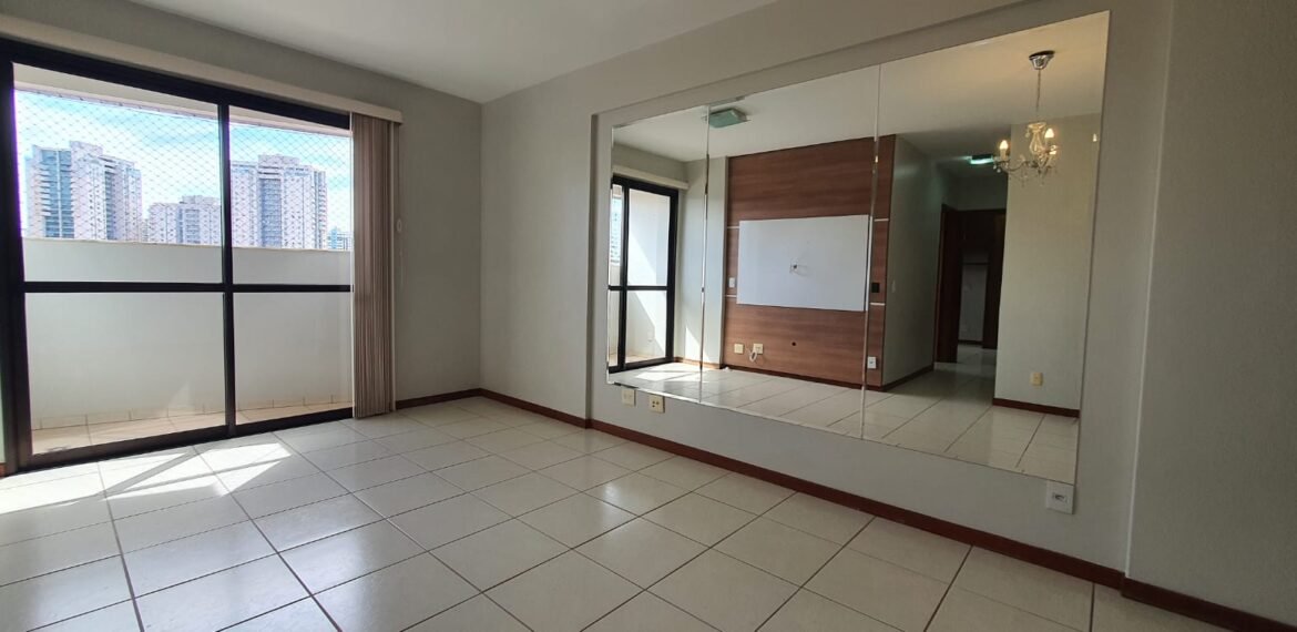✅ Sala com com lustre, espelho, móvel e varanda,
