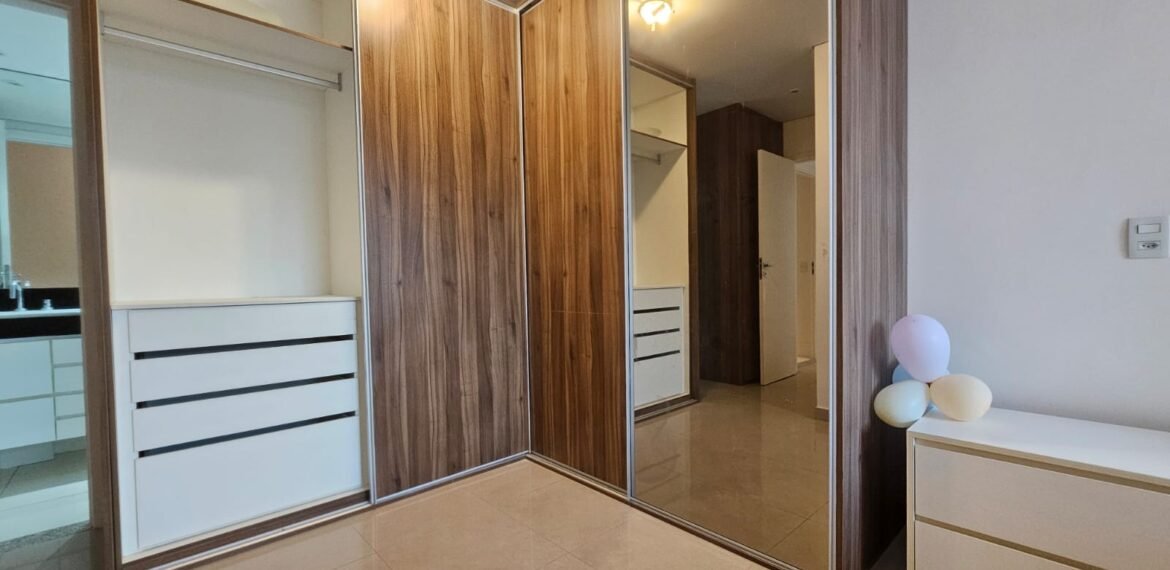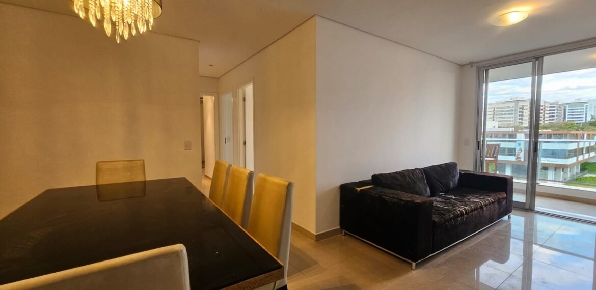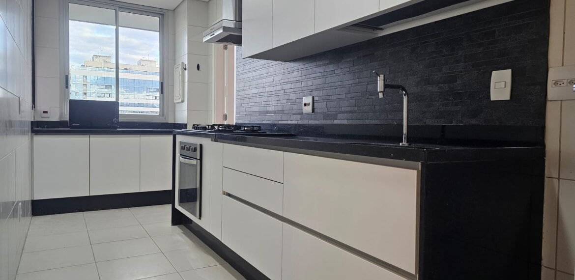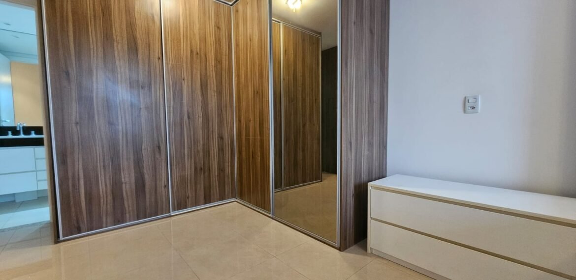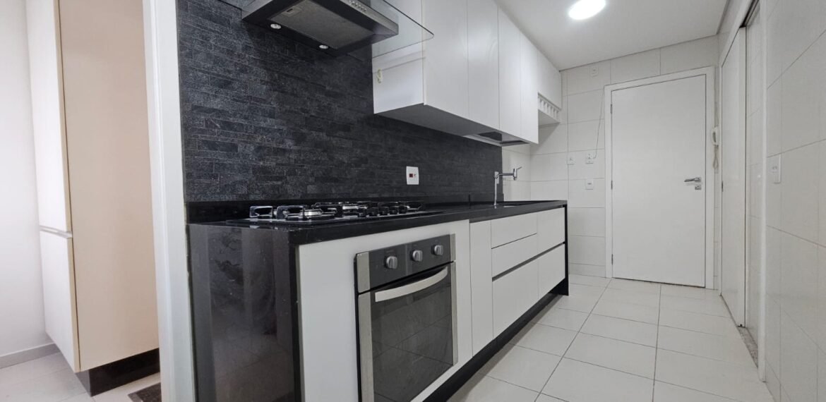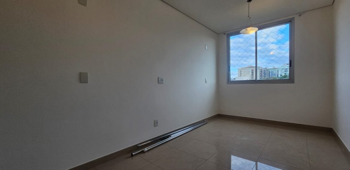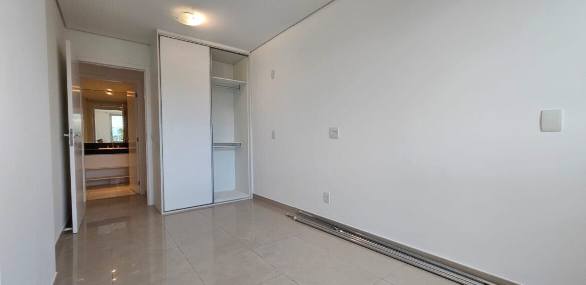 Excelente apartamento para aluguel, com 106 m² de área privativa, localizado no quarto andar com vista livre, muito bem distribuído em 3 quartos (sendo 1 suíte e outro com acesso à varanda), sala ampla, varanda aconchegante, cozinha equipada, 3 banheiros e 2 vagas de garagem cobertas, lado a lado, sem colunas – uma delas com armário para armazenamento.