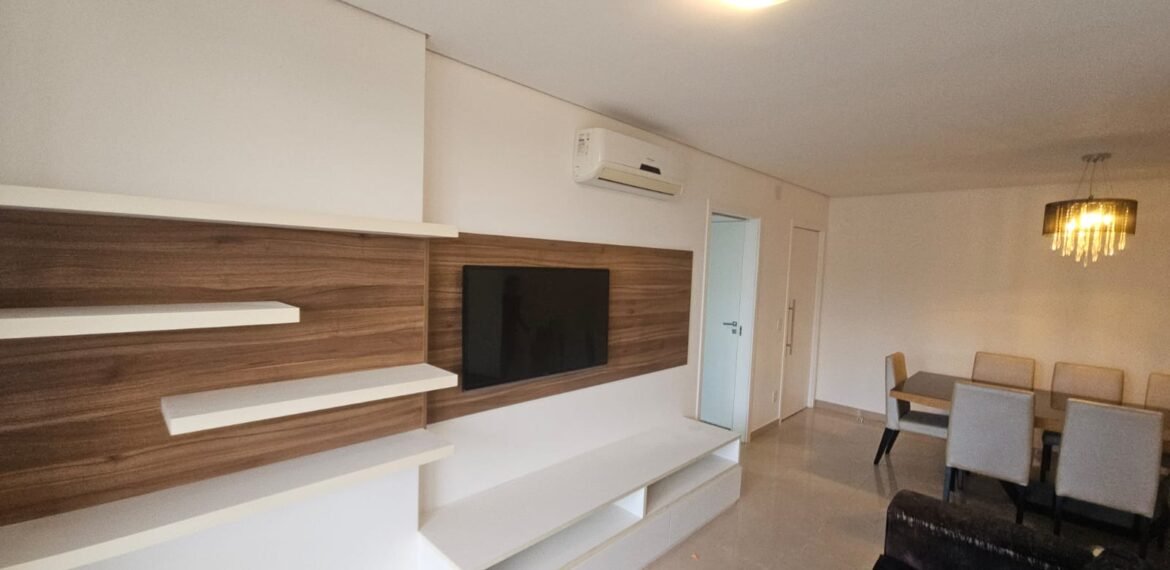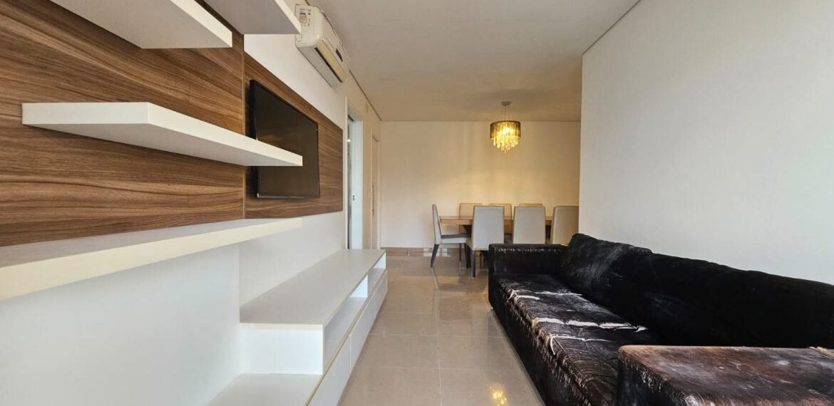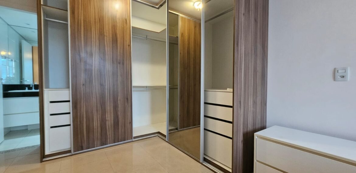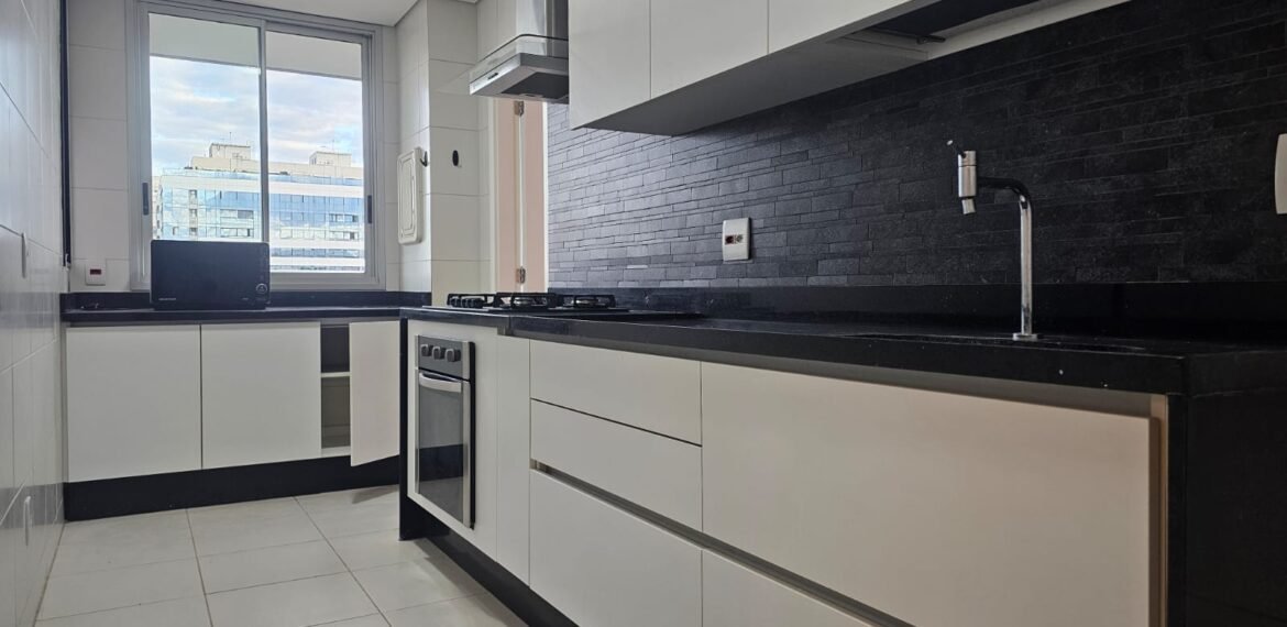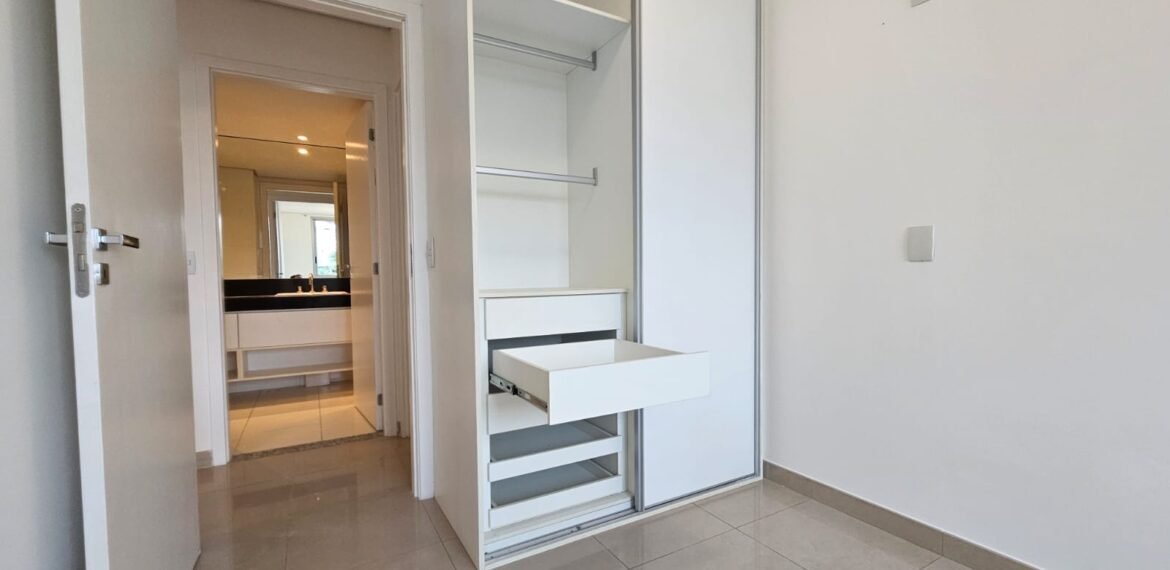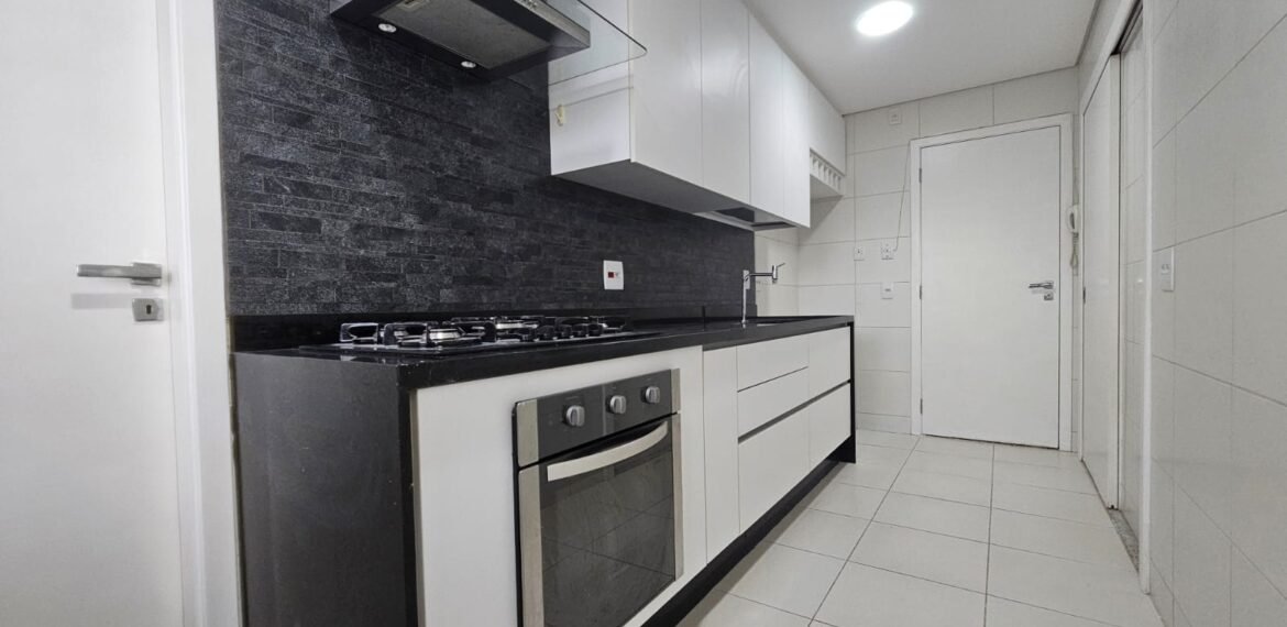 Excelente apartamento para aluguel, com 106 m² de área privativa, localizado no quarto andar com vista livre, muito bem distribuído em 3 quartos (sendo 1 suíte e outro com acesso à varanda), sala ampla, varanda aconchegante, cozinha equipada, 3 banheiros e 2 vagas de garagem cobertas, lado a lado, sem colunas – uma delas com armário para armazenamento.
