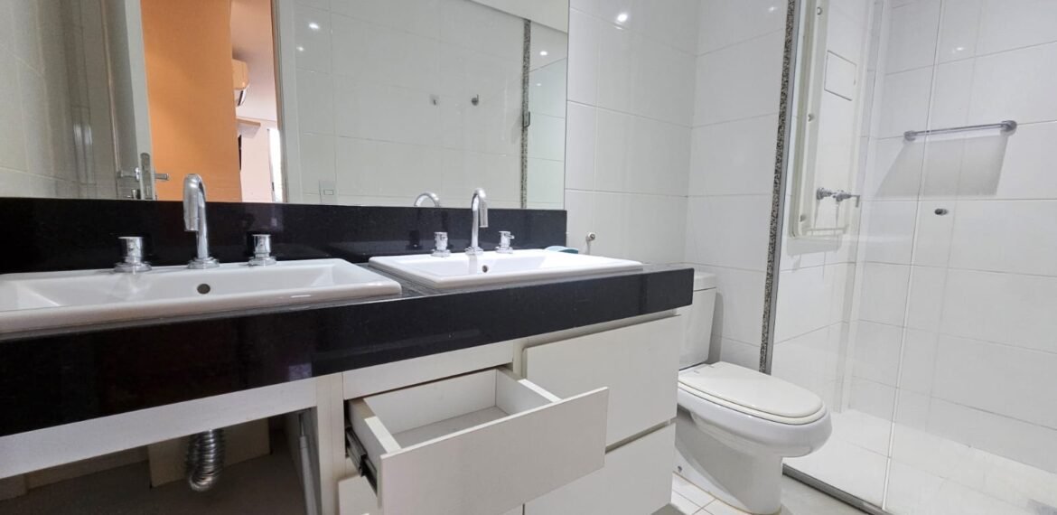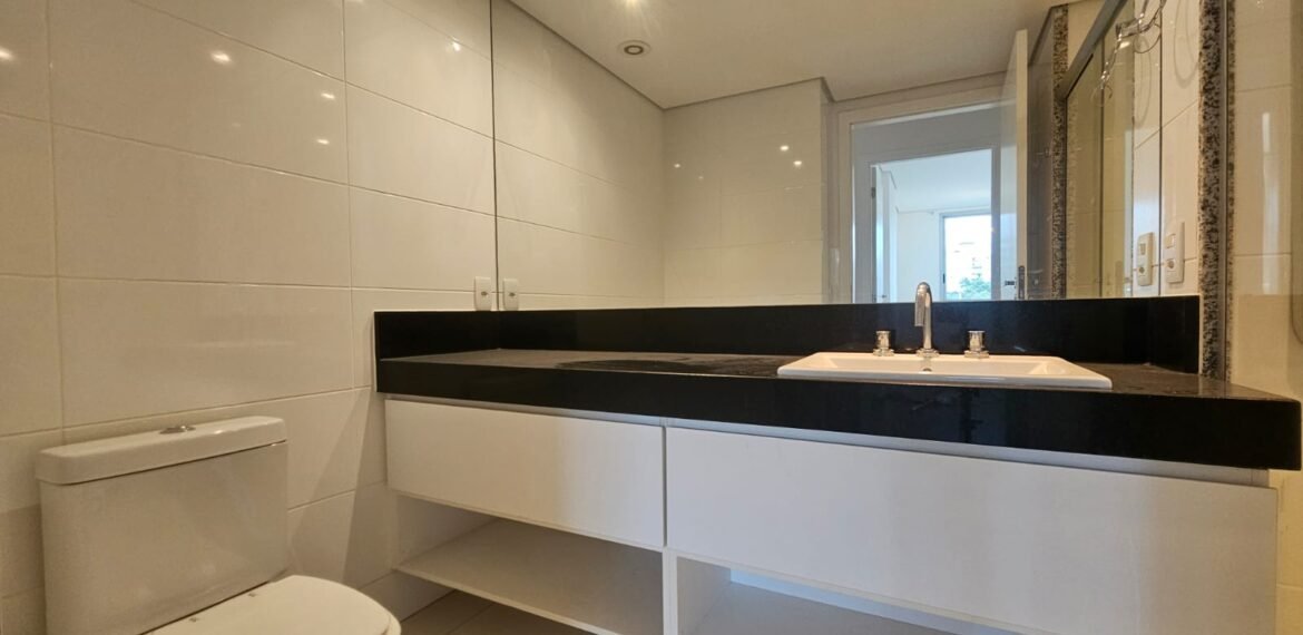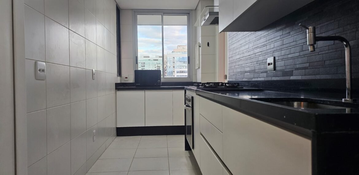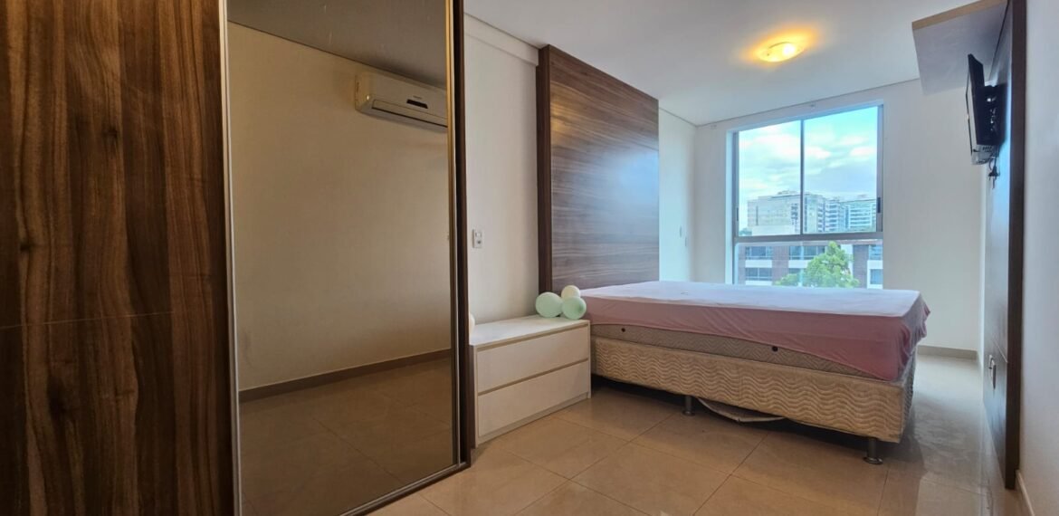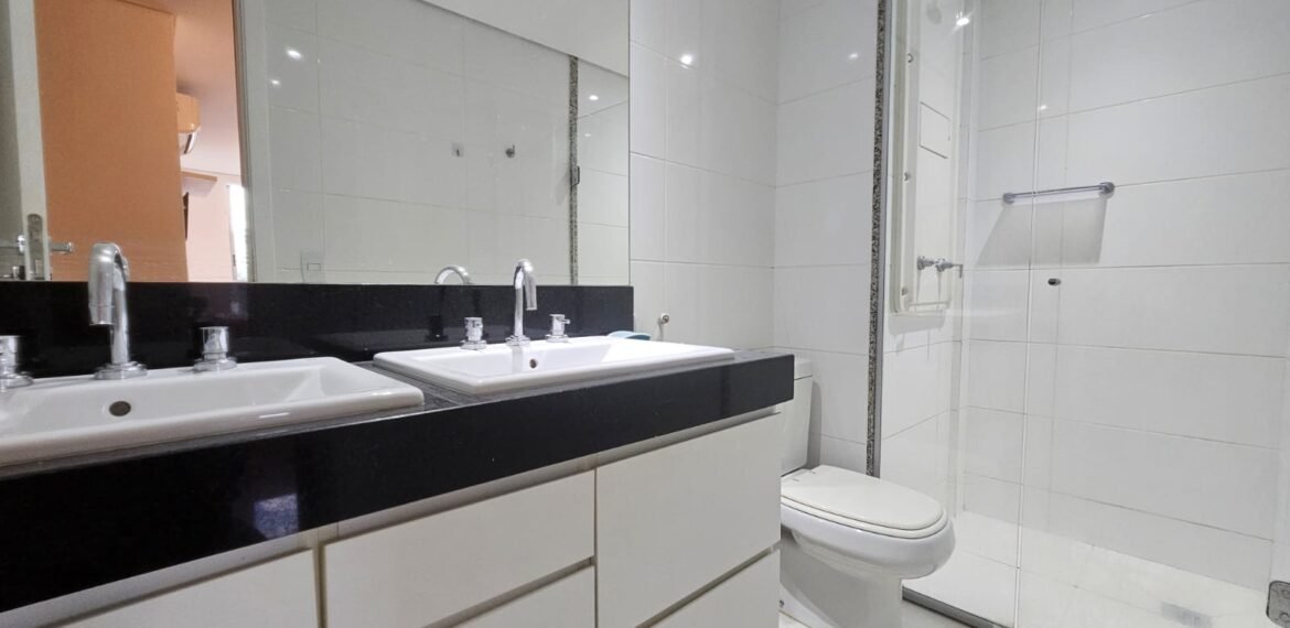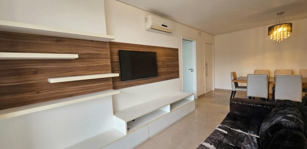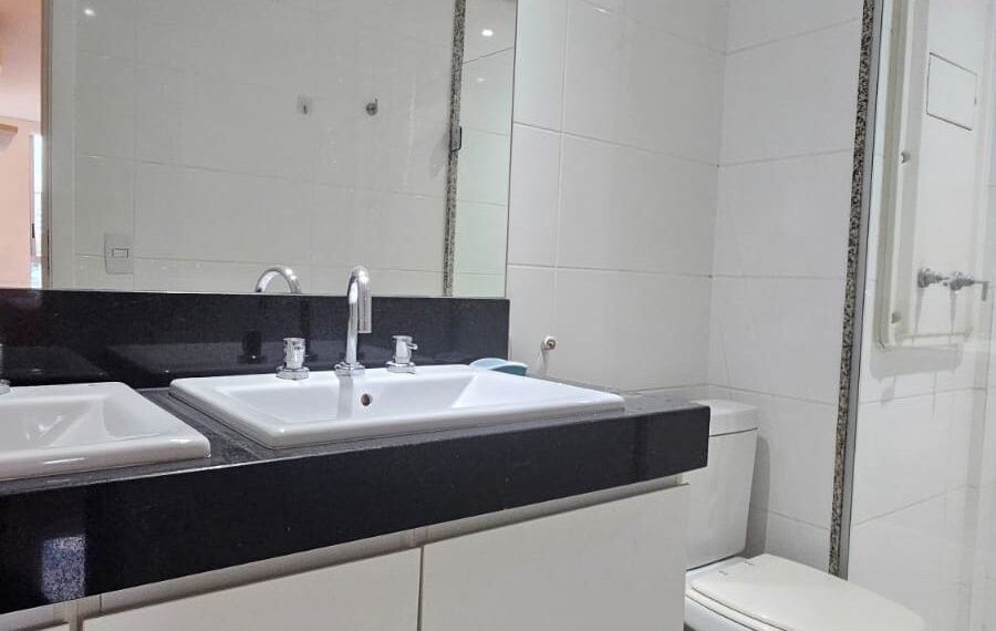 Excelente apartamento para aluguel, com 106 m² de área privativa, localizado no quarto andar com vista livre, muito bem distribuído em 3 quartos (sendo 1 suíte e outro com acesso à varanda), sala ampla, varanda aconchegante, cozinha equipada, 3 banheiros e 2 vagas de garagem cobertas, lado a lado, sem colunas – uma delas com armário para armazenamento.