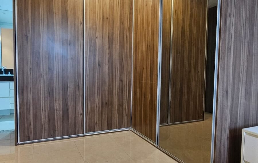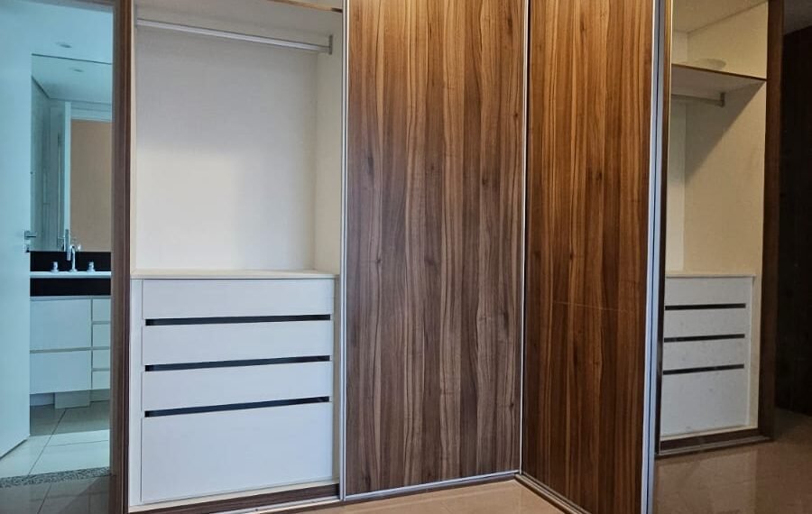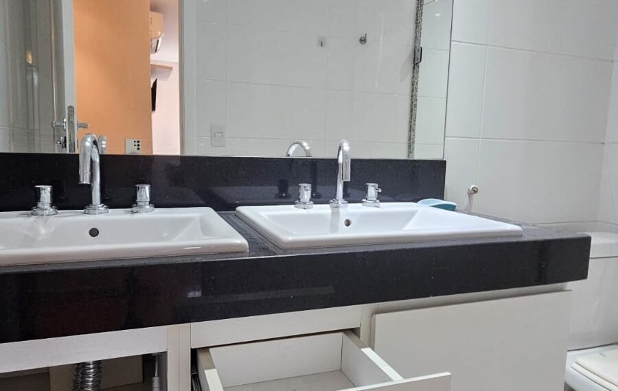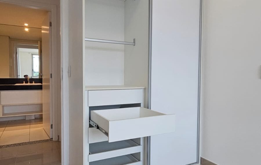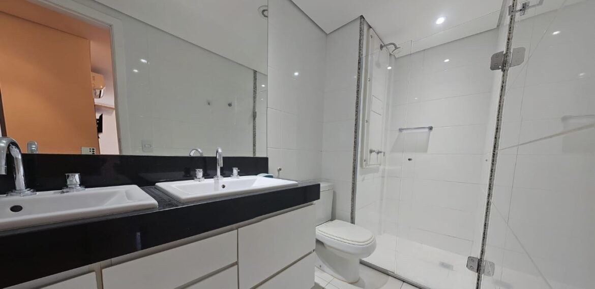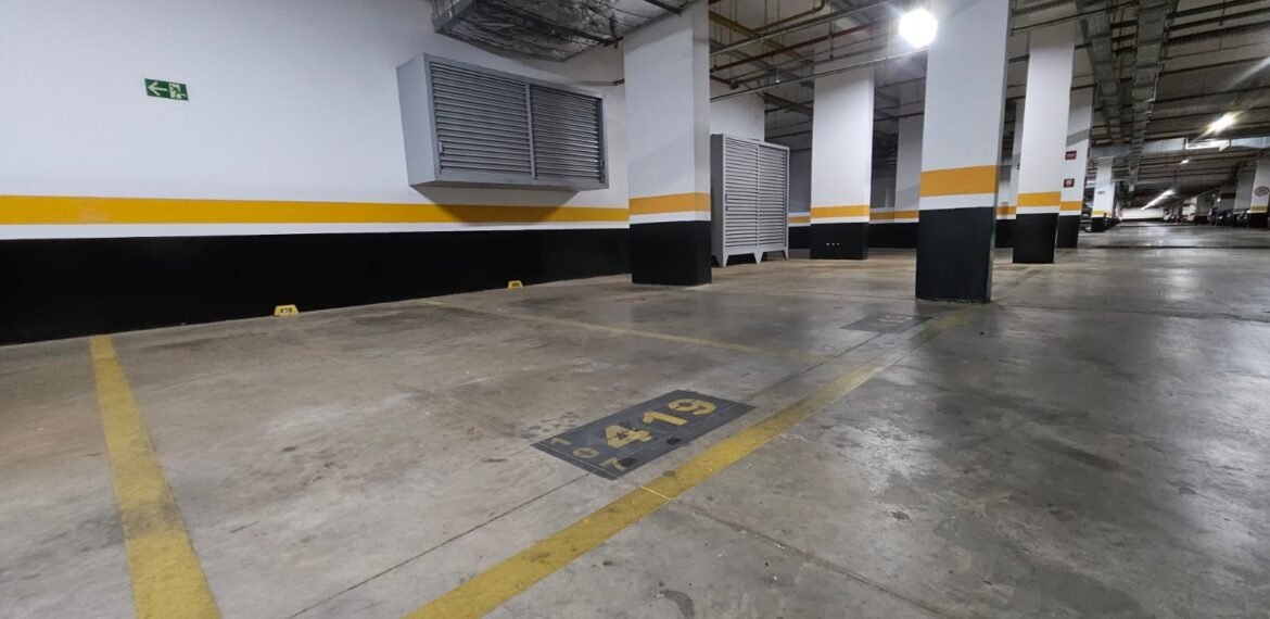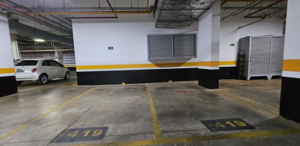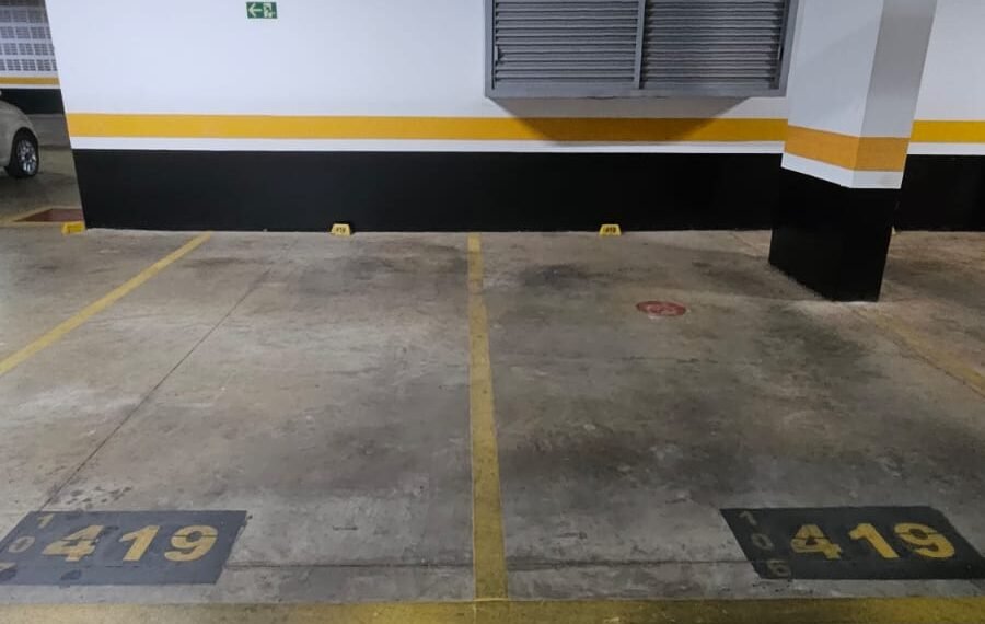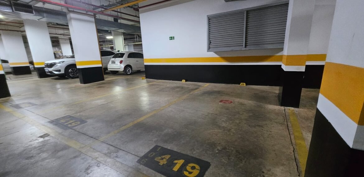 🚗 2 vagas lado a lado, sem colunas, com armário de apoio.