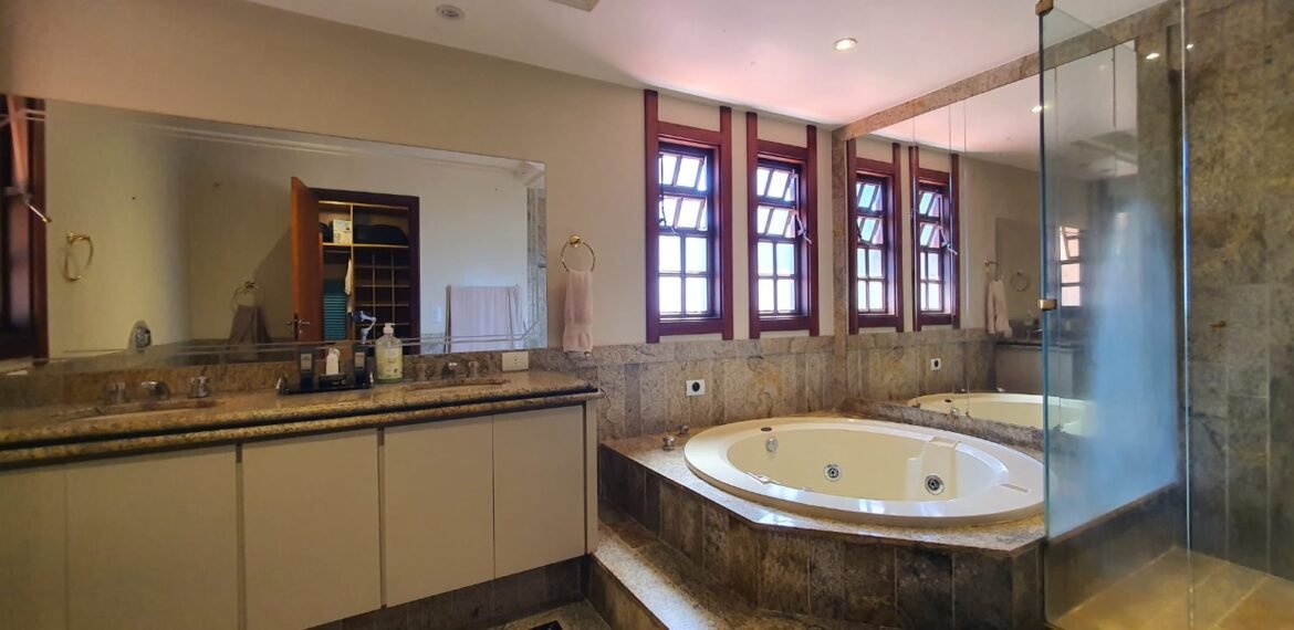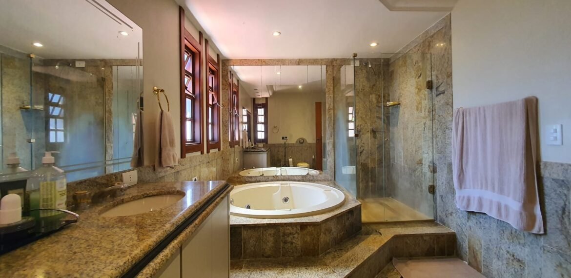 ✅ 04 quartos sendo duas suítes, uma delas com closet e banheira de hidromassagem, possui ainda um banheiro social que atende os outros dois quartos,
