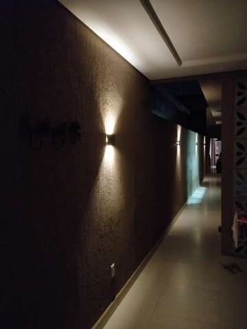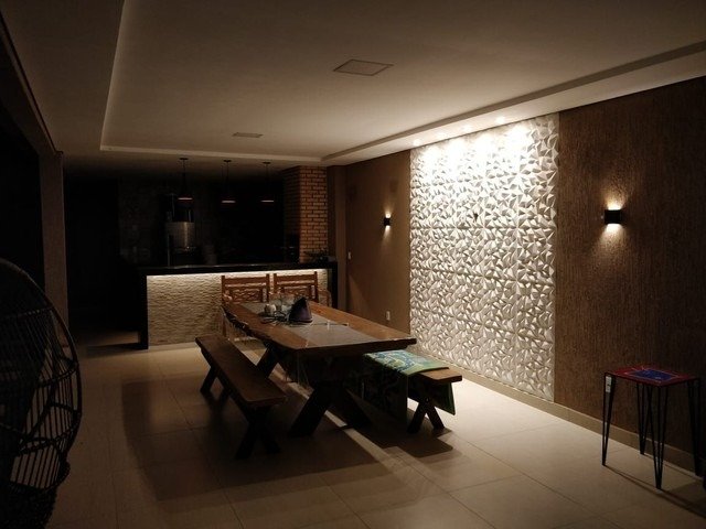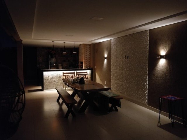 Sala ampla com projeto de iluminação e 2 ambientes,